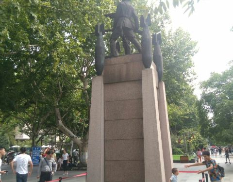 相对来说这里比六公园的游客集中度要高一些,一是靠近西湖音乐喷泉,二是走出去就是繁华商区了顺着西湖往北走,大至的景色都差不多,湖边的公共设施也是延续着的,到了这里又能看到一组反映淞沪战役内容的雕塑。相对来说这里比六公园的游客集中度要高一些,一是靠近西湖音乐喷泉,二是走出去就是繁华商区了...顺着西湖往北走,大至的景色都差不多,湖边的公共设施也是延续着的,到了这里又能看到一组反映淞沪战役内容的雕塑。相对来说这里比六公园的游客集中度要高一些,一是靠近西湖音乐喷泉,二是走出去就是繁华商区了。 这里的当地人不少,有跳广场舞的,有在地上写字的,更有趣的是几棵大树下围着好多人,缘由是树上可爱的小松鼠已经和游客能打成一片了。 展开