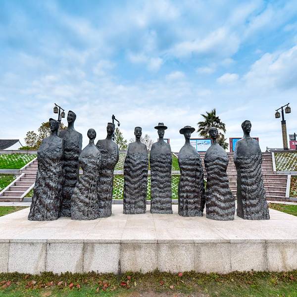 可以静下心来观赏岸边的景色徐志摩偕友人观潮雕像