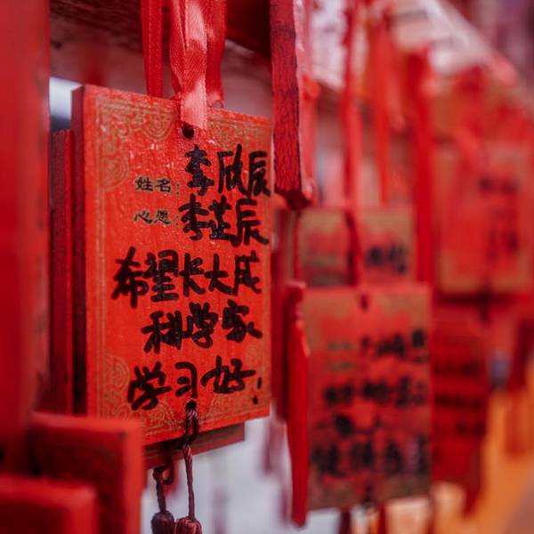 却成了天下学子美好心愿的寄托一块块许愿牌挂满了木架