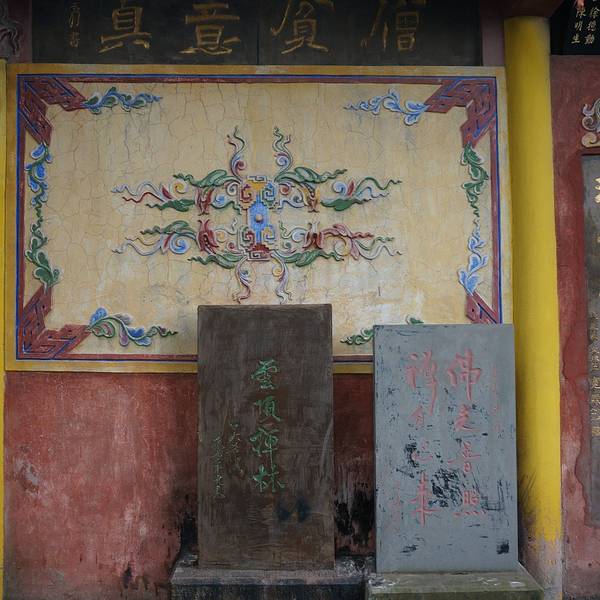 山上林荫霭深,有“云顶日出”、“雾山云海”、“云顶晴岚”等胜景。院内则为花园及假山水池。柱础镌刻纹饰