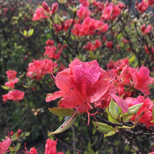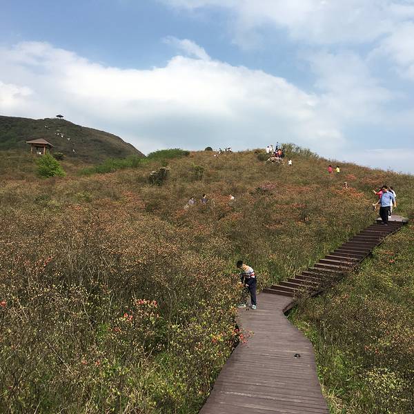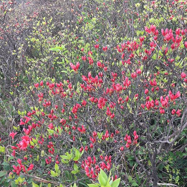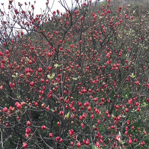 稍事休息后,我们步行约10分钟到达红莲寺,买票做景区车前往七星岭。沿途杜鹃花大都没开,到了七星岭,很遗憾,只零星开了些,大多都是花骨朵。不过我们还是咔嚓了不少照片,心里想象一下所有杜鹃花盛开的景色,一声叹息啊!