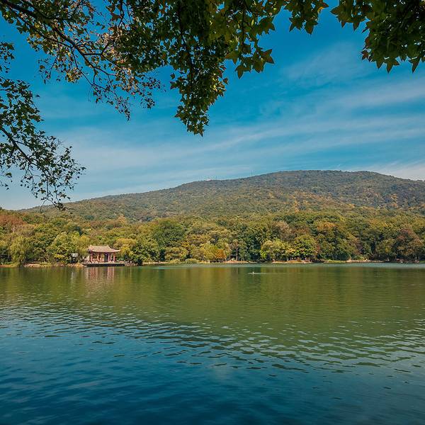 紫霞湖面积约50000平方米,湖水清澈,周围林木蓊郁,山青水碧,风景佳丽位于明孝陵东北部,是个深藏于山间林海中的人工蓄水湖泊,因与紫霞洞相连而得名。紫霞湖面积约50000平方米,湖水清澈,周围林木蓊郁,山青水碧,风景佳丽。在这个季节,还有老者在湖中游泳,敬佩!