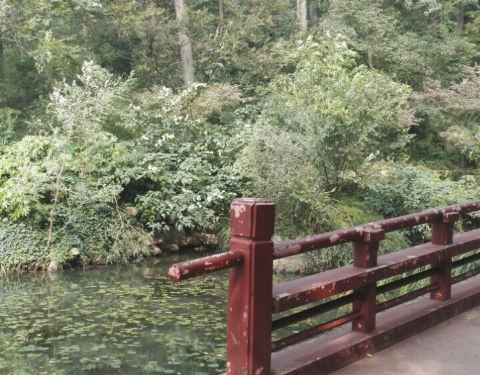 紫霞湖位于明孝陵东北,是20世纪30年代修建的水库。过去水库并未对外开放,所以知道的人很少,即使现在也只有一些当地人和锻炼身体的老人会去湖边,湖水清澈,青山绿树倒映湖中,算是南京的一块“秘境”。如果你是为了旅游而来的外地游客,单独去一次紫霞湖并不十分有必要,一般都是玩过梅花山、明孝陵后,顺便过去一瞧。明孝陵东侧有小路通向紫霞湖,遇路口都有路牌指示各景点所在,如果遇到岔路不知道怎么走,也可以问一下当地人,特别是中老年人,一定会热心地给你指路。紫霞湖南边有两个景点,从明孝陵过来的路上应能看见。一个是定林山庄,建在原定林寺遗址上,为园林式建筑,王安石被罢官后曾在此读书。因为刘勰的《文心雕龙》也写于此处,山庄里辟有刘勰与文心雕龙纪念馆,图文介绍王安石、刘勰、定林寺历史,陈列着陶俑、瓦罐等文物。另外,山庄中还有一块陆游游定林寺的石刻。另一个是颜真卿碑林,也叫三教会宗堂,里面陈列着颜真卿和其他名家的书法石刻。一路走到紫霞湖,还能看到一些废弃的游泳池。到了紫霞湖,这里道路修得很干净,花草树木环绕,湖水呈现漂亮的绿色,水质很好,透过湖水能见底下的水草和鱼群。湖中有不少当地人在游泳,其实紫霞湖是禁止游泳的,湖周围竖有警告牌,一来湖中水草会缠人,二来湖中水流复杂有暗流,上下水温可以相差15摄氏度,容易抽筋,几乎每年都有溺水身亡的报道,还是请大家只在岸边散散步就好。