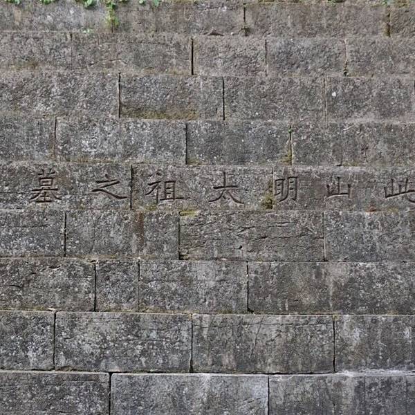 走到这里已经累啦,终于看到了明孝陵的最高点,也是帝陵前的最后一座地上建筑——坐落于方城之上的明楼小贴士:走近方城,会发现好像小钟乳石一般的方城外壁,当时觉得很疑惑,所以特意查了一下~ 原来这是由于长年累月的雨水侵蚀造成的结果。明楼建筑顶部于清咸丰三年(1853年)毁于战火,一百多年来,雨水沿着明楼四面墙壁而下,渗到墙体内部,裹挟着黏合剂从青石条的缝隙中涌出。现在所看到的白色物质就是古代修建时用的黏合剂喔!摸了摸这百年时间留下的印记,准备登楼 发现照片里石墙上的字了吗?轻松登顶