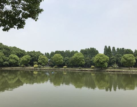 香樟树连片,都是大的树木,有池塘,有农家乐,吃吃玩玩