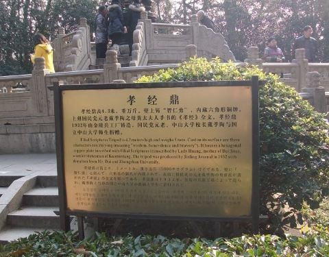 在中山陵陵门外面,不单独收费,说是鼎,但这外形更像一个寺庙里常见的香炉。鼎身刻着智仁勇三个字,据说是国府元老戴季陶的母亲手书全本孝经,孝敬谁就不知道了。