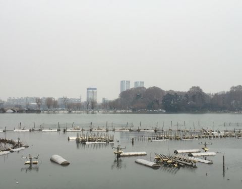 位于玄武湖公园环洲北侧接近芳桥得位置,水域上有一尊观音菩萨的塑像,临湖的空地上布置了舞台和座椅...