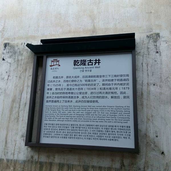 在高淳老街西门牌坊那边的一条小巷子里面,发现了这一口乾隆古井,古井上面有个亭子,上面书写着“乾隆古井”四个字,近前观察,古井中还有不少水,看样子这口井现在还在用,传说想当年乾隆下江南经过高淳老街这...