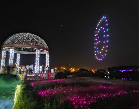 纳凉节期间,每晚还有水幕电影和无人机表演,非常值得一往!夜晚的紫色灯光,体现出了薰衣草庄园的浪漫
