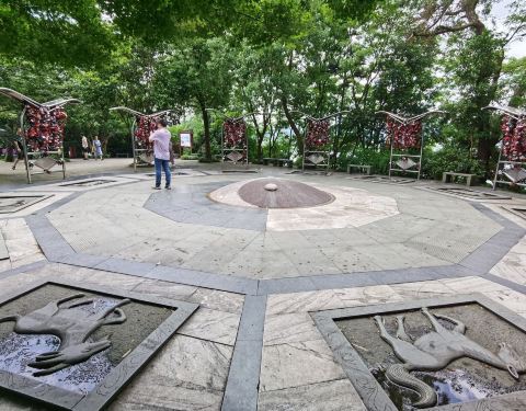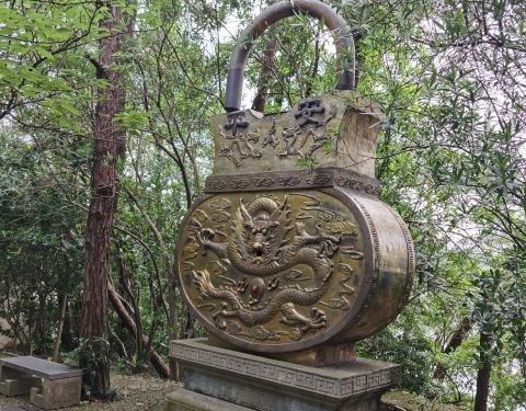 锁岛位于千岛湖风景区,乘坐千岛湖游轮,其中一站就是锁岛。岛上有很多与锁有关的雕塑,但看起来既无历史感,也无精雕细琢的痕迹,只有比较粗糙的人工打造痕迹。一路走来,周围除了一些雕塑,其余基本上都是野树杂草,不值得一游。