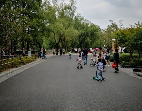 家门口的公园啦,随便带孩子去逛逛挺好 晚上还有夜公园也不错 从早到晚,人不要太多 有塑胶跑道,所以晨跑和夜跑的人也很多,