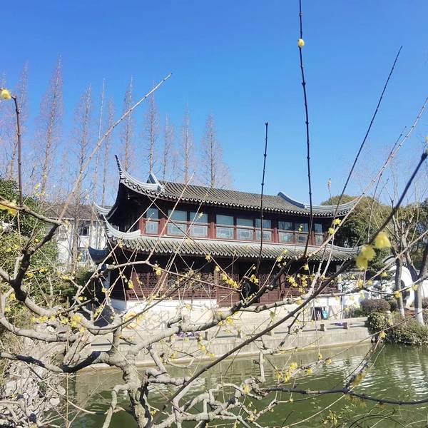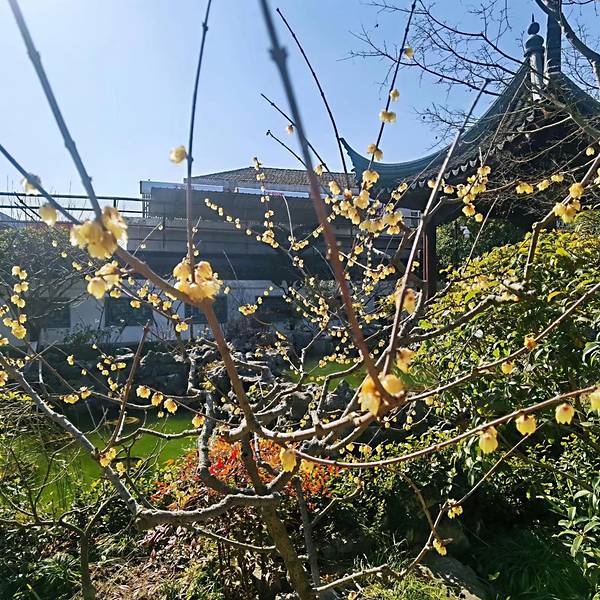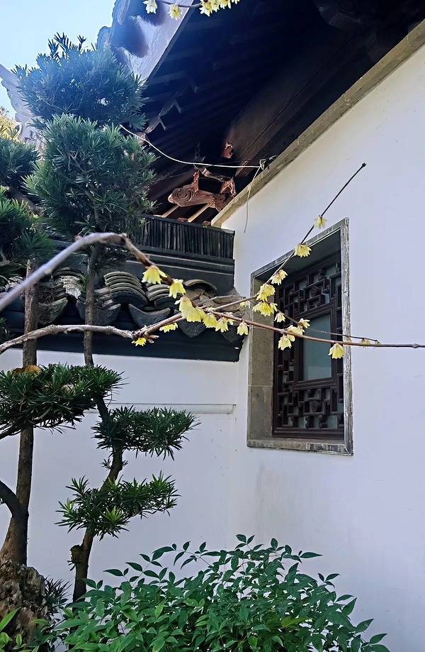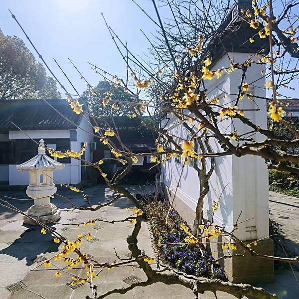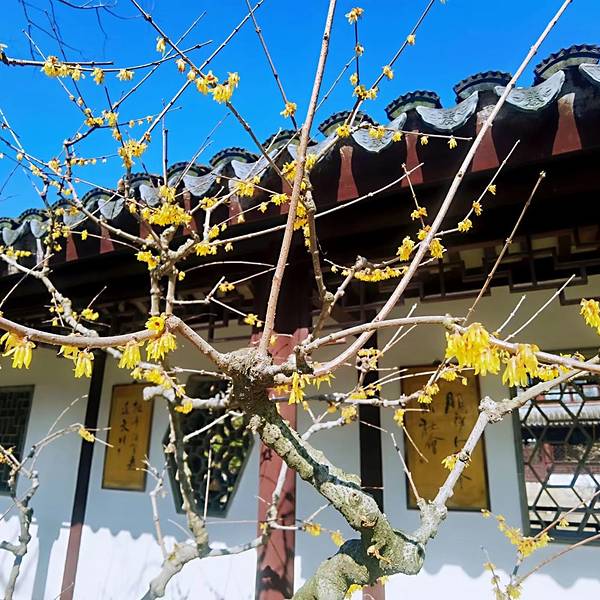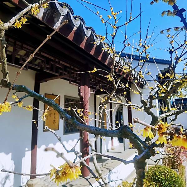 紫藤还没到赏花时节,腊梅却已悄然绽放,此时的紫藤没上线,然赏梅正是时候。 “古藤园”种植的全是腊梅,数量不多,主要集中在进口处照壁两则的路旁,还有一处是在“紫云阁”的后院。 “腊梅不是梅,花中真寒客”,腊梅开百花之先,独天下而春,迎霜傲雪,岁首冲寒而开,拥有着一份独特的美丽,因为她生来自带的中式古典气质,清丽傲骨、冰清玉洁,在万物萧瑟时绽放于疏瘦花枝之上,璨若星辰、隐隐生辉,所以自古以来就深受国人的喜爱,更是文人墨客喜爱的植物之一。 “古藤园”里的腊梅,最佳取景处应该是“紫云阁”的后院,这里可以拍摄到“墙角数枝梅,凌寒独自开”的画面。当推开“紫云阁”的后门,看到黑色的瓦砖、白色的院墙、褚色的格窗,还有金黄色的腊梅,脑海里突然涌现出大观园的影子,这个场景再也合适不过这样一个人物,那就是披着大红氅,看似娇弱柔嫩,实则刚韧坚强,俏皮又不做作的林妹妹,如果配上婉转缠绵的琴声和大雪纷飞的背景,那绝对是一幅绝妙精致的画面。 此时的脚本镜头还可以是这样的:冬夜。一个人坐在屋里。拥着炉火。翻着书。抿口茶。窗外。飘起了雪花。推开窗。墙角的一枝腊梅。在风雪中摇曳…… 这种情境很诗情、很画意、很古典、很浪漫。 如果是我遇到这样的情境,我会顾不得寒冷,走出屋子,嚓!嚓!嚓!先去拍几张照,然后码上抒情的文字,火速爆朋友圈,抢头条去。哈哈哈哈! “古藤园”里的腊梅,快要谢了,盈盈一枝梅,静静报春回,初春的“古藤园”里很安静,静静的散步、静静的赏梅、静静的迎着阳光、静静的送走晚霞,这样静静的氛围,很适合喜欢安静的人,去静静的体味“疏影横斜水清浅,暗香浮动月黄昏”的诗意。