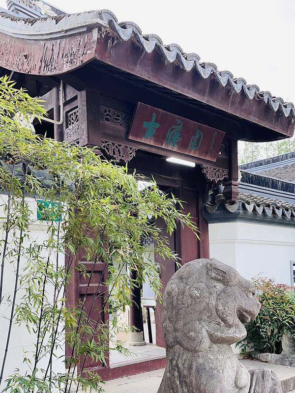 当你走进园内,你会发现平面的布局、空间的组织、意境的创造,产生了引人入胜的效果, 一山、一池、一楼阁、一亭、一榭、一复廊、一桥一石一景墙,各自成景,走遍园子,感觉园内的两处地方比较出彩:一处是景墙+半亭。它位于园内的西北端,在一道景墙前,设置了一座亭亭玉立的翘檐形半亭,亭中置放着“八棱石井栏”,该景取名为“宋井亭”;还有一处是池塘+复廊。它位于园内的池塘南面,两个廊中间隔了一道墙,均可通往同一个目的地,而景致却是截然不同,这种故意分隔不同景色的建筑手法,实在是巧妙。