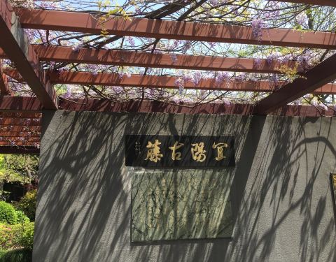 古藤园位于上海市闵行区临沧路,园内一棵紫藤有470多年历史,为沪上紫藤之最,系明嘉靖年间乡贤、诗人董宜阳手植,高3.7米,围1.5米,覆盖面24*14平米,蟠根虬枝,生气盎然,开花时香气蓊郁,青紫相映,冠盖半街...