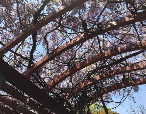 4月7日去的古藤园,去年也是4月7日去的真巧!今年古藤园的紫藤没有去年开的旺啊,真希望紫藤花越开越旺能看到紫色花海,今年是没希望了期待明年能看到吧!