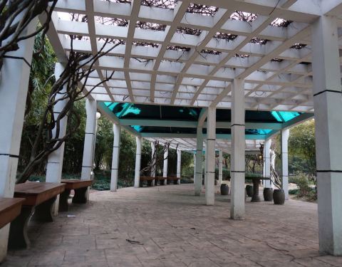 凉亭,小湖,植物茂盛,还有花,鸟语花香,非常不错,休息可以在里面打羽毛球,各种运动基本能满足你的要求