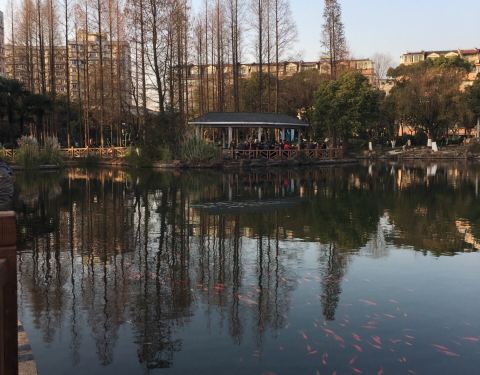 位于汾西路上的这个公园不错,没有醒目的标饰,大铁门也不常开,只要边门出出进进,但里边视野开阔,有亭有檐,中间还有一个挺大的水域,每天都有许多老人坐在长廊边上聊天晒太阳,还有一个环形步道,上面的人排...