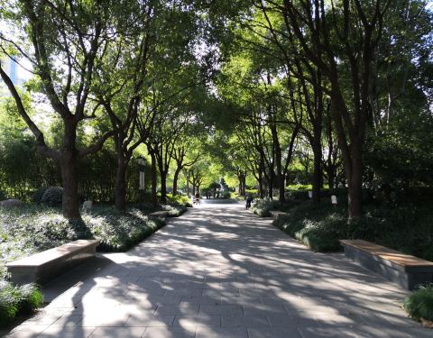 顶着大太阳的午后公园里绿荫下走走还是满惬意的,公园内还有跑步道,造型奇异的雕塑以及供小朋友玩耍的器械