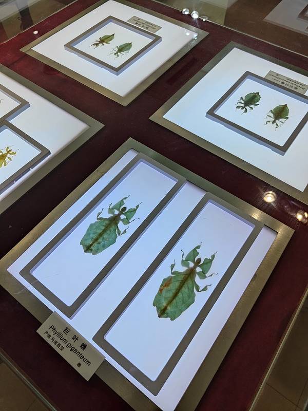 二楼有一个竹节虫特展,专门展竹节虫,䗛类的确是第一次见。竹节虫盛产于热带,东南亚地区,我国也就是华南地区常见,为什么要选这个做特展,难道是所里有重大课题?