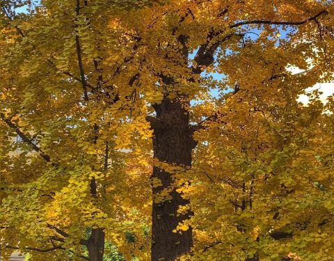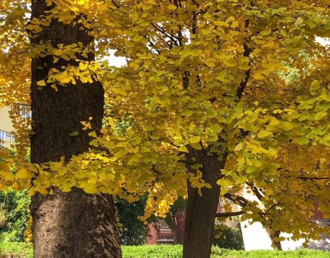 现在银杏叶也黄了,遍地金色的叶子好美,根本不用特地跑网红地打卡,银杏就是这么一种一棵也能很壮观的植物