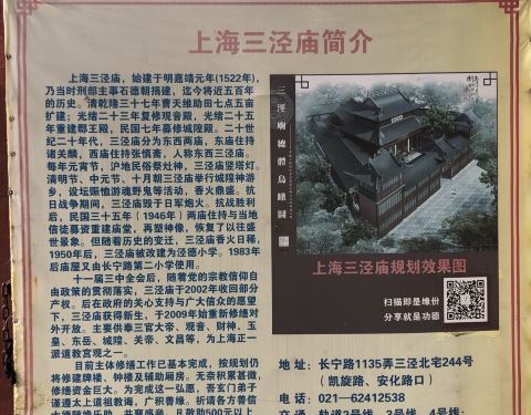 中山公园地铁站出来往南不远,有一道教的三泾庙。很有历史。若要恢复往日盛况,肯定仍得假以时日