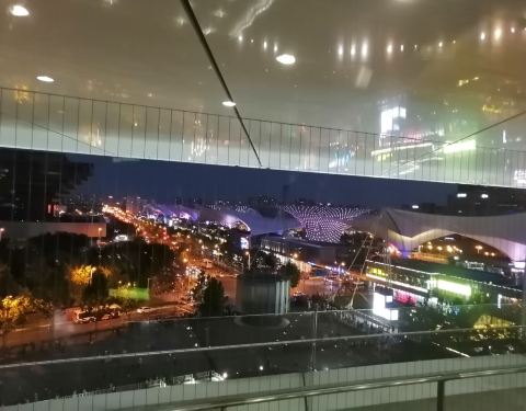 观景环廊位于梅赛德斯奔驰文化中心的6楼,从3号门进入,电梯直达。6楼除了390度观景平台,还有电影院和日式餐厅,是周末休闲娱乐的好地方,晚上看出去正对世博源,夜景很漂亮。