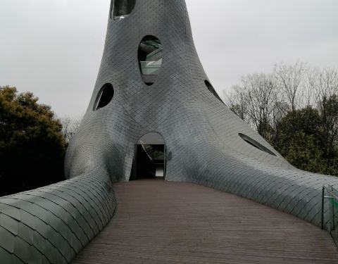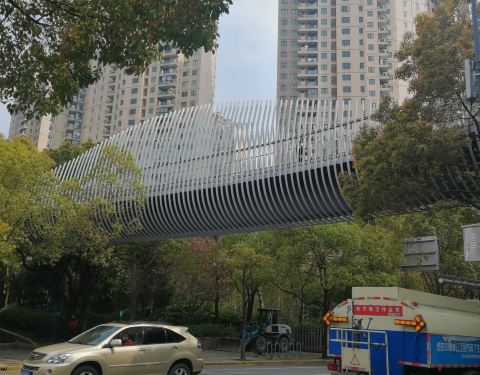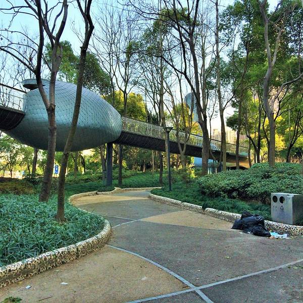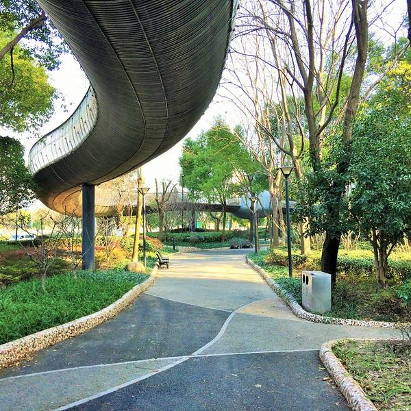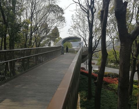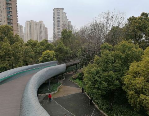这是一处免费景点,也是近期比较火的网红景点,很多小姐姐来这里拍照。想要观景,就要登高,观景步廊的起点是一个四层的建筑,流线型的设计,很有艺术气息,这里可以看到对面的苏州河和公园绿地,风景很漂亮。整个步廊除了这个观景点还包括一条长长的空中步廊,游客可以在这里漫步,感受两旁的树荫和风景,如果有微风吹来,那便更是惬意了。