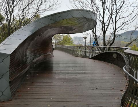 这是一处免费景点,也是近期比较火的网红景点,很多小姐姐来这里拍照。想要观景,就要登高,观景步廊的起点是一个四层的建筑,流线型的设计,很有艺术气息,这里可以看到对面的苏州河和公园绿地,风景很漂亮。整...