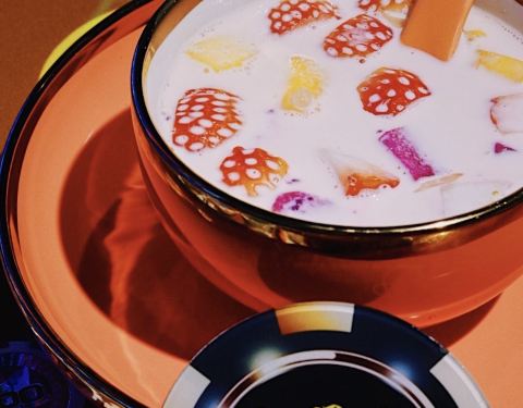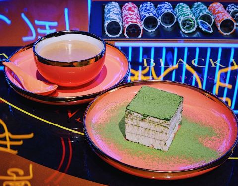信不信 在魔都也可以把糖水铺吃出澳门风云的即视感这家新开的澳门人糖水有瘾,一上桌就下不来,霸气侧漏的牌桌上堆满了各色筹码一整面霓虹灯墙集合了澳门网红打卡地标,小姐姐们买定离手吃完再走 绿茶冻饼 ¥50提拉米苏版的绿茶冰淇淋,静置5分钟后食用口感最佳。沁人心脾的绿茶清香可以恰好中和冰淇淋的甜腻,浓醇冰爽的冻饼深得我心。 鲜杂果西米露 ¥43五彩缤纷鲜果荟萃,时令草莓芒果火龙果果粒,清新爽口的西米露非常解腻。 原味梳乎厘¥44没想到鸡蛋膨胀以后这么好吃‼️蛋奶以完美比例融合浑然一体,新鲜出炉端上桌的那一刻香气扑鼻,吹弹可破的柔嫩口感无可挑剔,等不了3分钟就已经趁热下肚。 腰果糊 ¥48继开心果糊糊和栗蓉糊糊后的又一网红力作,尽管其貌不扬却是一道创意功夫甜品,浓郁坚果香气一口入魂,细腻幼滑的程度堪称一绝