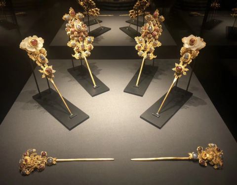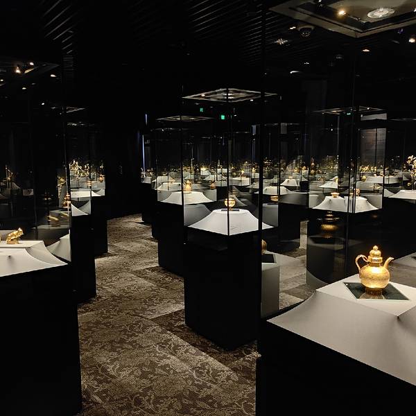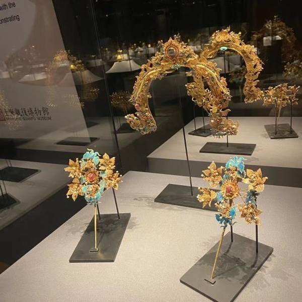 博物馆设有4个固定展厅:瓷器馆、东西馆(东、西方的文物)、金器馆(我认为是全馆的亮点,展品造型精美、靓丽)、造像馆,以及一个临时展厅(我去的时候展出的是清代服饰,虽不是贵重的朝服,但从刺绣以及保存的完整程度上来讲,已经甚是精美了)。