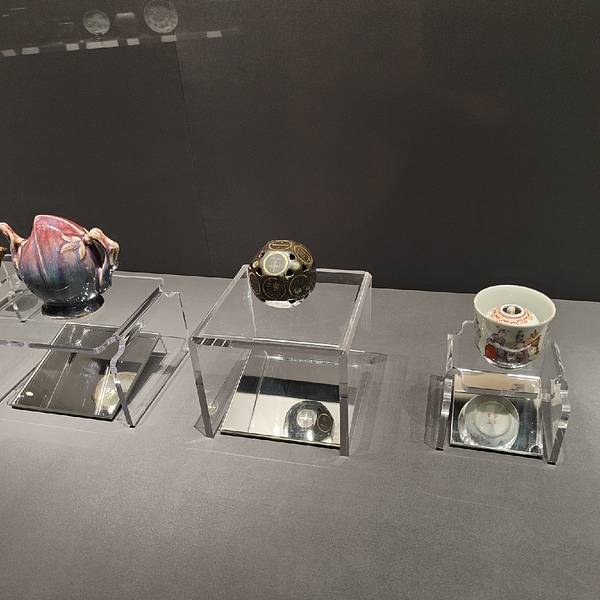 2. 部分展柜巧用玻璃制造出移步换形的效果,也就是说展柜的对角线上放了一面双面镜子,即可清晰地看到展品的正面,亦可看到背面;同时,从展柜的两个对面看过去,能看到不同的展品。