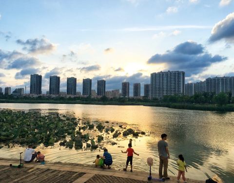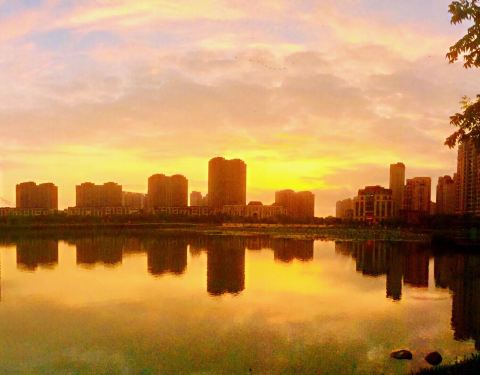 园区占地总面积234000平方米,绿化面积137000平方...秋天芦苇荡开始变黄,在风的吹拂下发出沙沙声。黑水鸡在湖面游荡,晚上黑天鹅、绿头鸭还跑上岸来。夕阳下湖面波光粼粼,周边居民有出来遛狗的,也有饭后散步的。