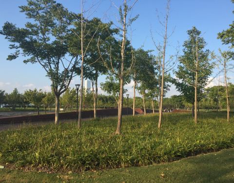 前滩休闲公园北起小黄浦,南至上中路隧道,东起前滩大道,西至黄浦江,城市休闲好地方
