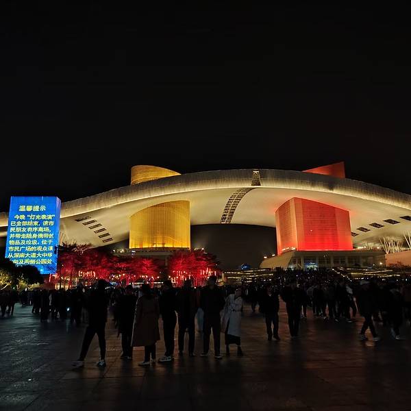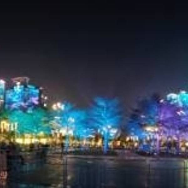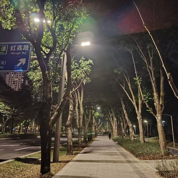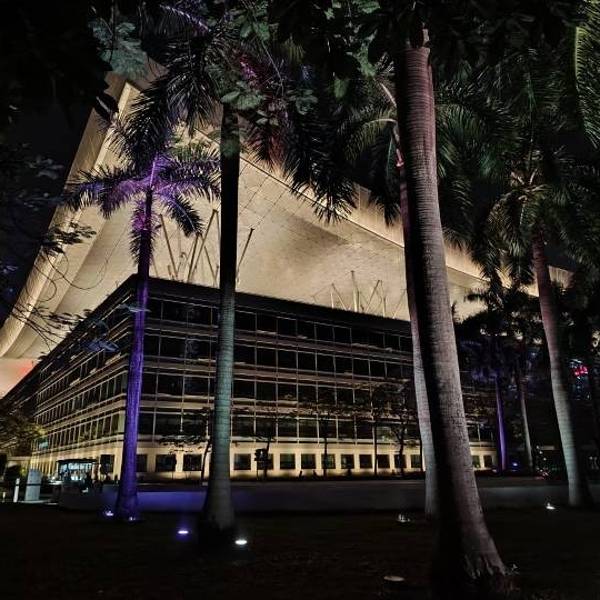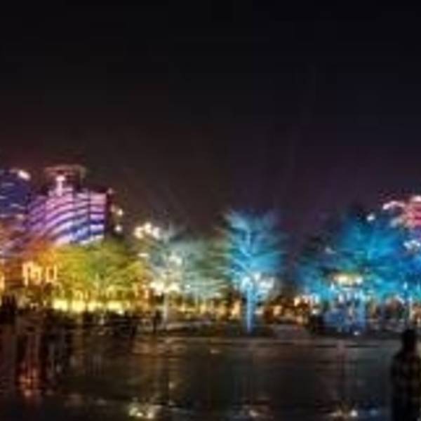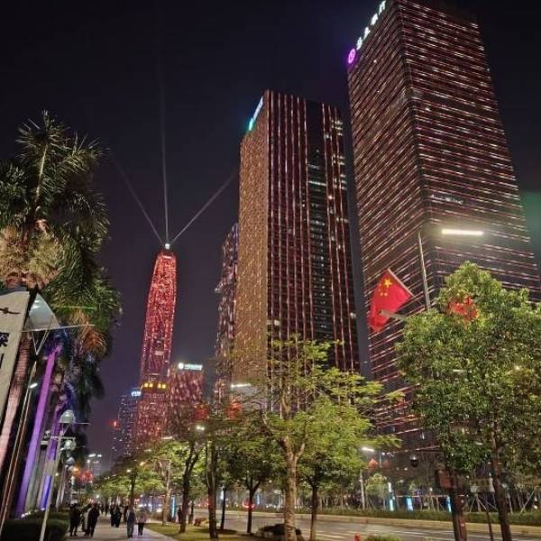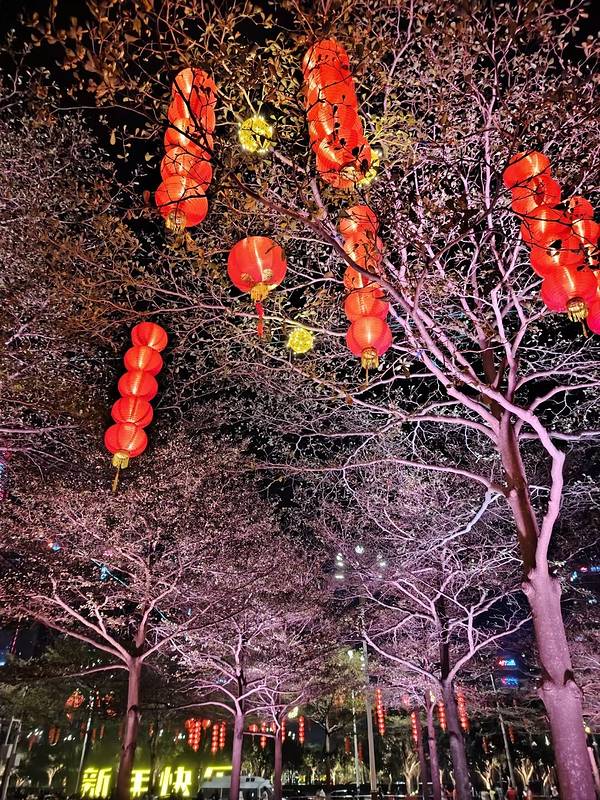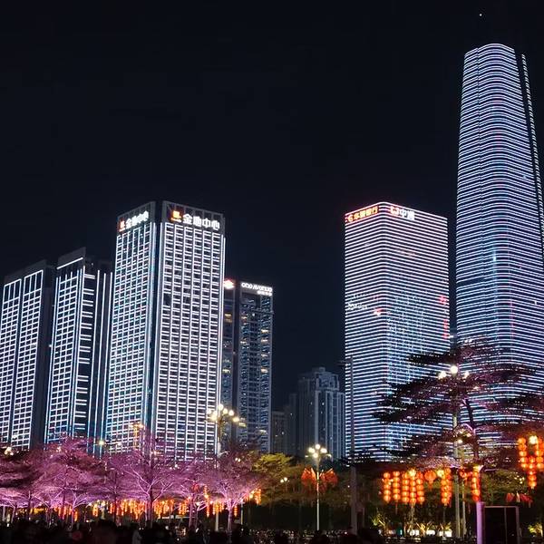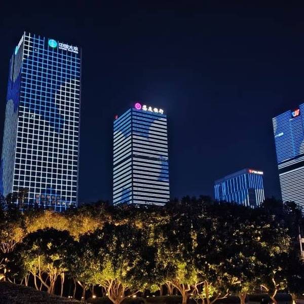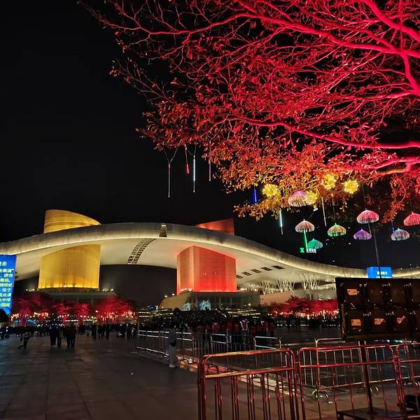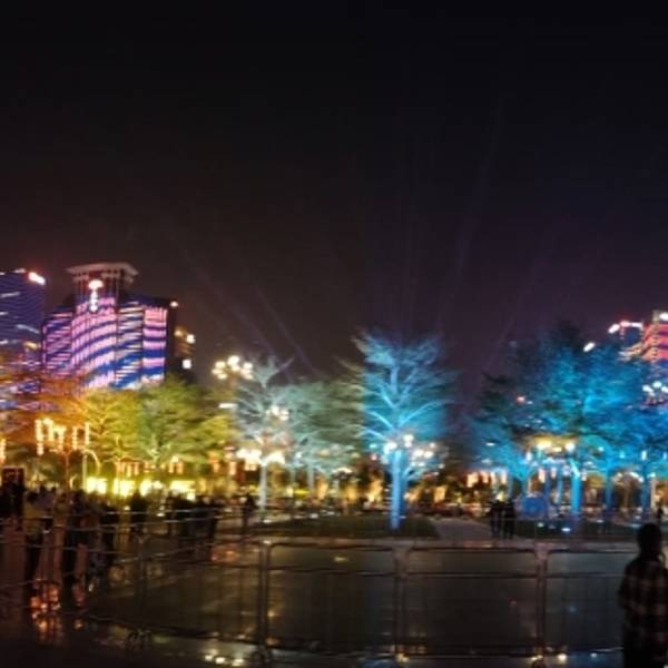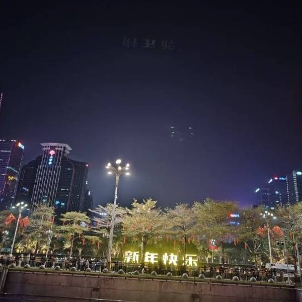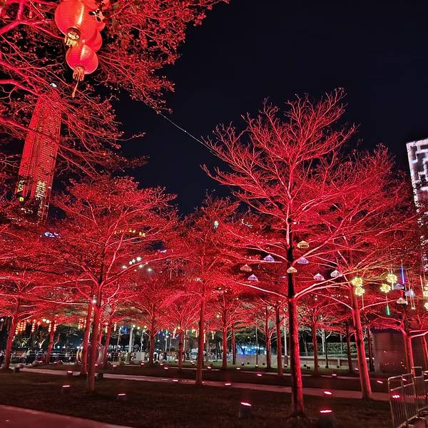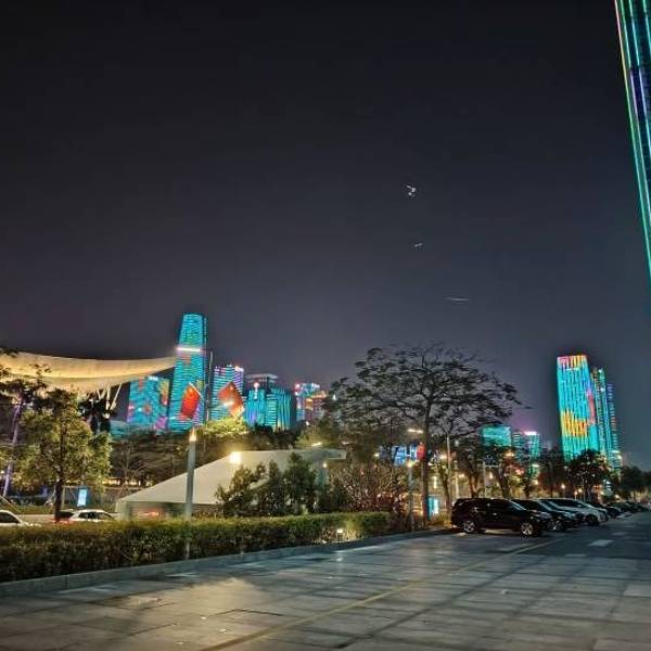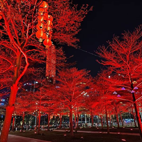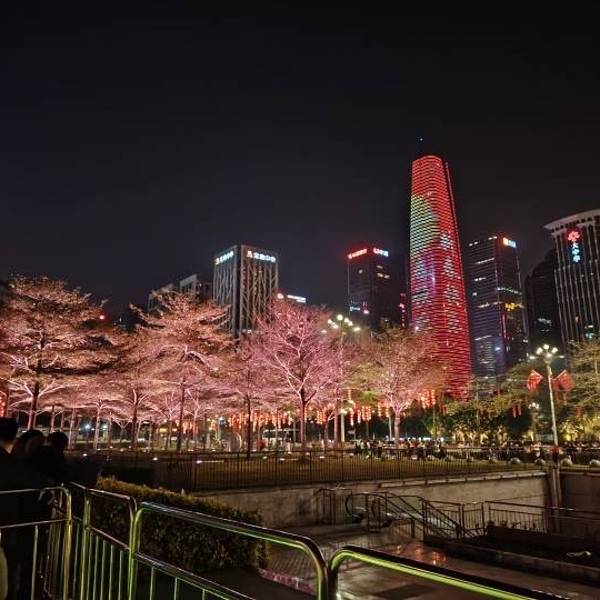 一场灯光秀20分钟左右,看得好过瘾。结束后,有广场和大屏幕提醒大家有序离场,虽然人很多,但是确实很有秩序,这时,深圳市民广场周围的树就成了亮点了。