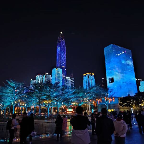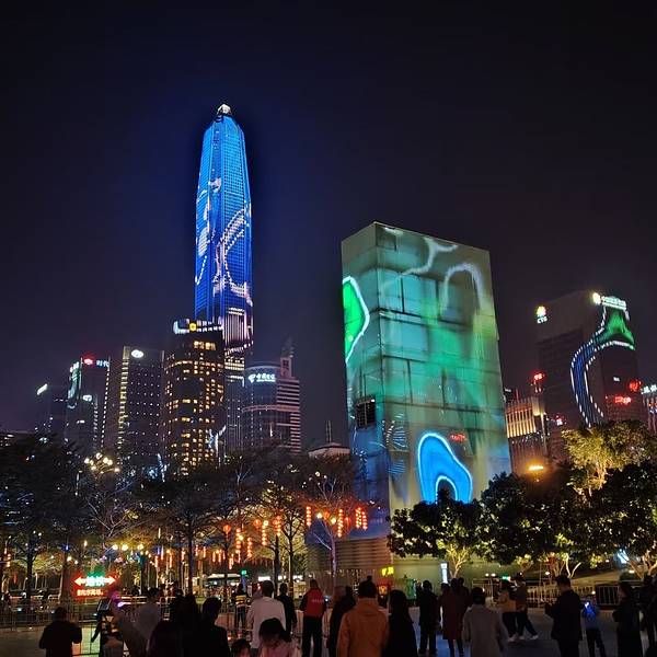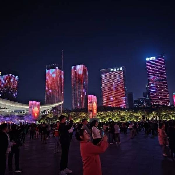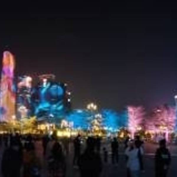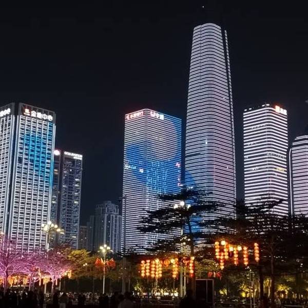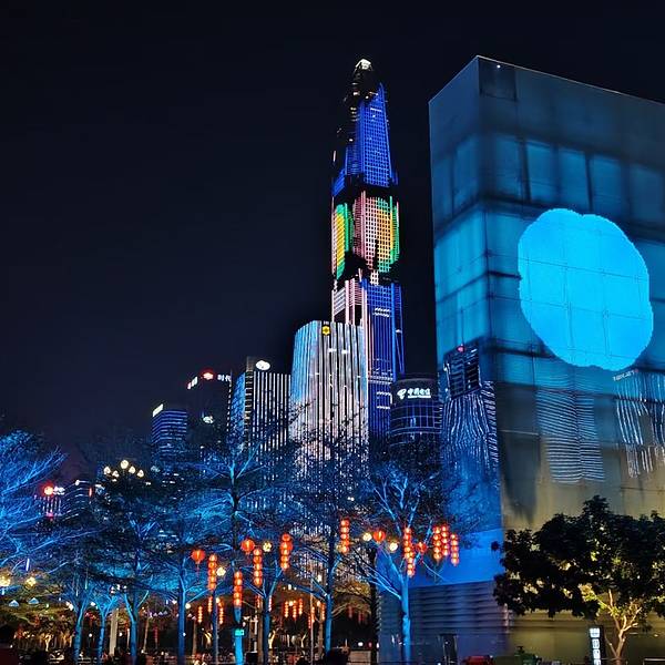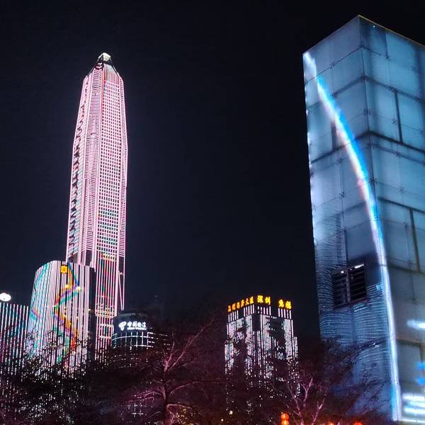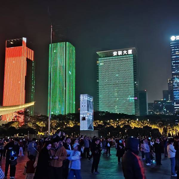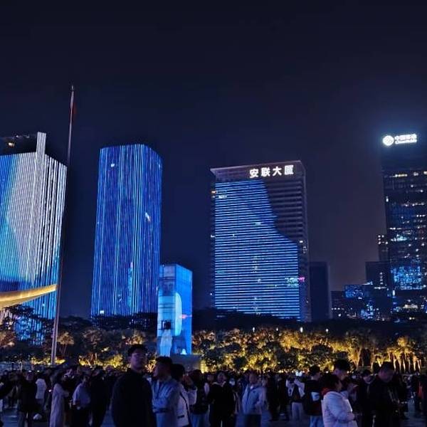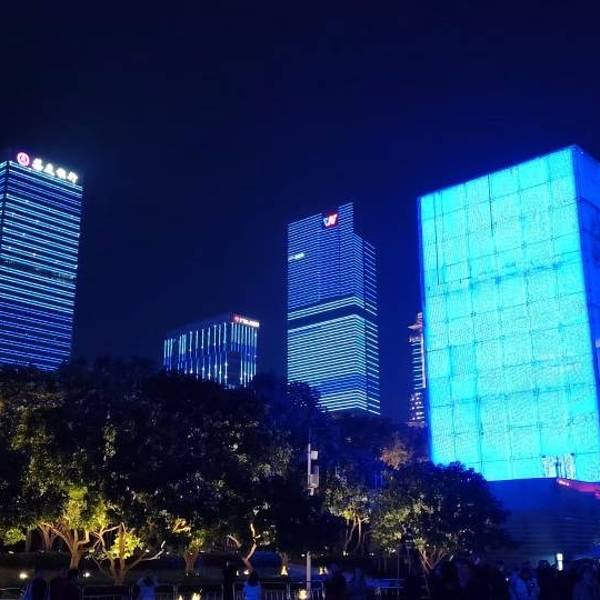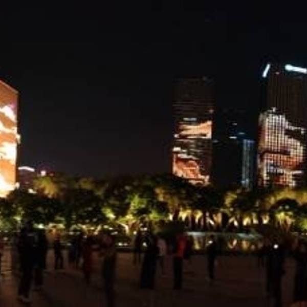深圳市民广场的灯光秀开始了,霎时间,广场周围几十栋楼顿时流光溢彩,美轮美奂。 有点,灯光秀是免费的哦。