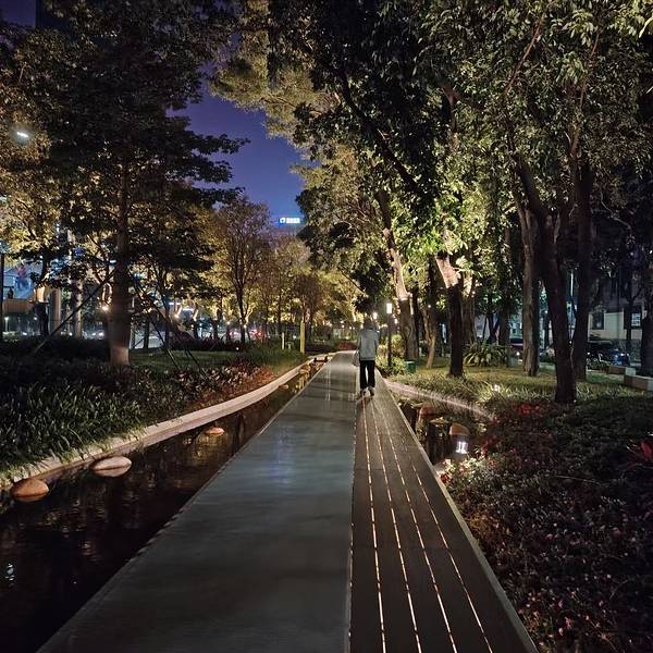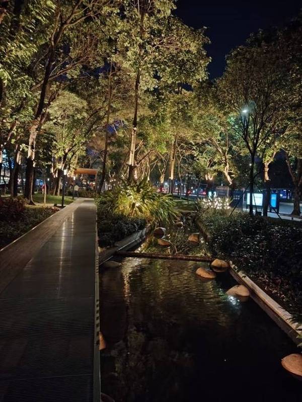 从岁宝商场出来,我继续向市民广场走,一路上的树都打着灯光,很漂亮,还有一条“小河”,可见深圳icon的城建非常不错。