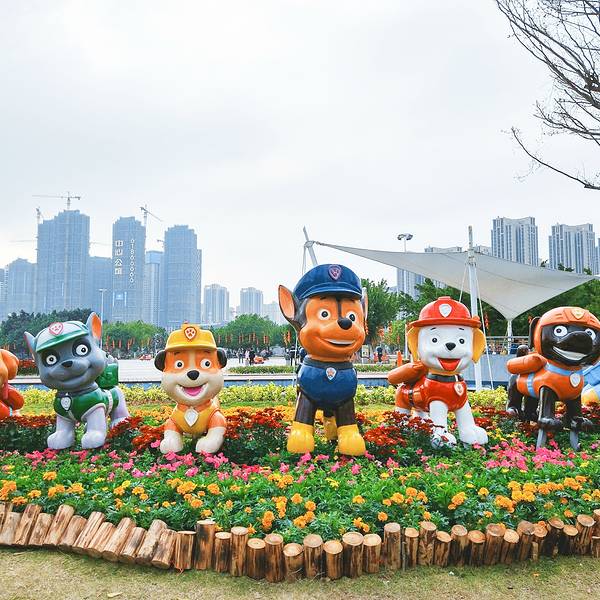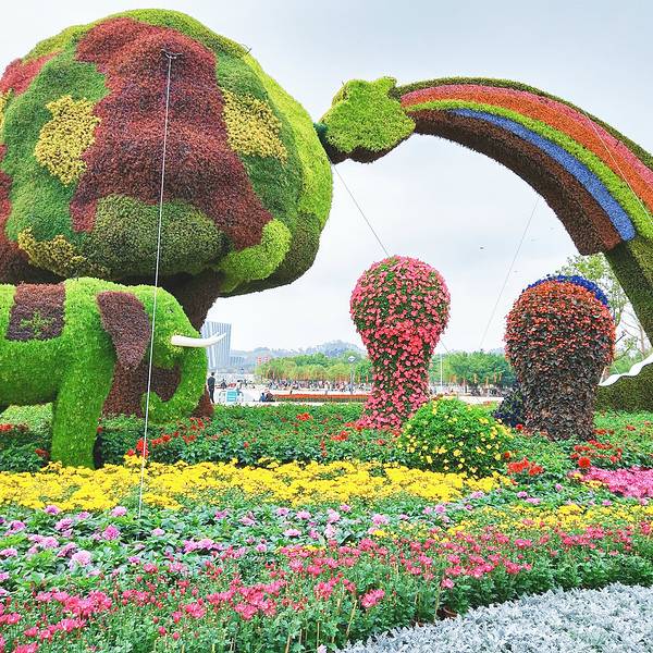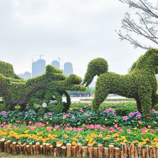 公园入口的花草被修建地非常有趣,大树、彩虹及小象的元素构成一幅和谐的画面。【公园环境】【周边美食】