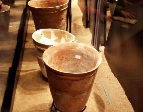 盘龙城遗址博物馆里有三个陈列室,一个陈列发掘遗址由来等,一个陈列旧址居住和生活场景的,一个陈列盘龙城历史文物的。有付费讲解员,也可以租解说器,20元/次。国庆期间还有个临时陈列室,主题为甲骨文的记忆。