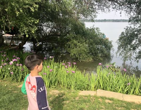 在东湖绿道上,靠近东湖海洋公园,很美的一块小园子在东湖绿道上,靠近东湖海洋公园,很美的一块小园子。五一期间在做活动,有很多民间手工艺品展出,带着儿子去逛一逛,在湖边草地上玩玩游戏,坐一坐野个餐,还是很惬意的。