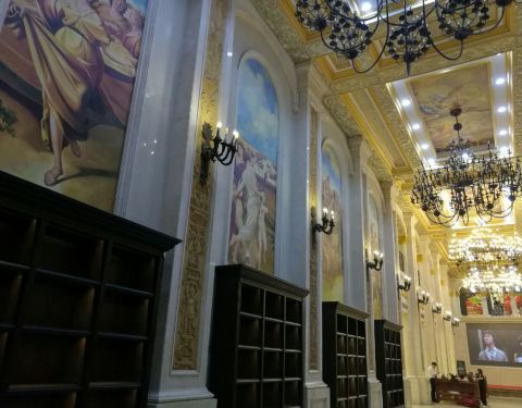 ...金碧辉煌的大教堂,门口有年轻艺人在拉小提琴,增添了浪漫感,内饰非常豪华,仿佛身在欧洲的大教堂内光谷欧洲风情街的中心位置,远远的就可以看到这座金碧辉煌的大教堂,门口有年轻艺人在拉小提琴,增添了浪漫感,内饰非常豪华,仿佛身在欧洲的大教堂内。