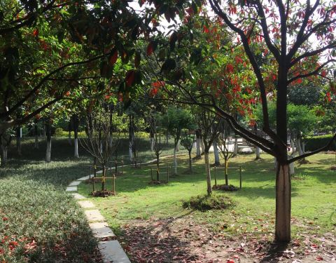 清新自然的感觉,绿树成荫,有湖水环绕,怪舒服的地方