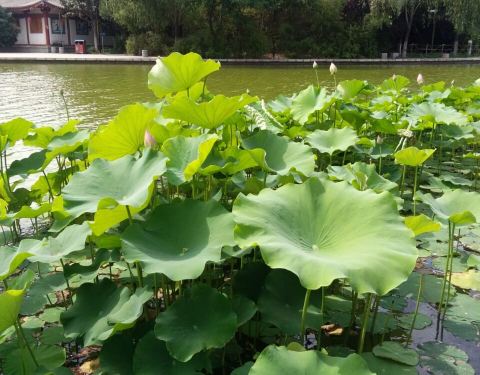一湖碧波荡漾的水中,一大片荷叶上盛开处朵朵荷花美不胜收公园环境很优美,里面种植的花草很多,四五六七月花季里面姹紫嫣红,份外美丽。一湖碧波荡漾的水中,一大片荷叶上盛开处朵朵荷花美不胜收。