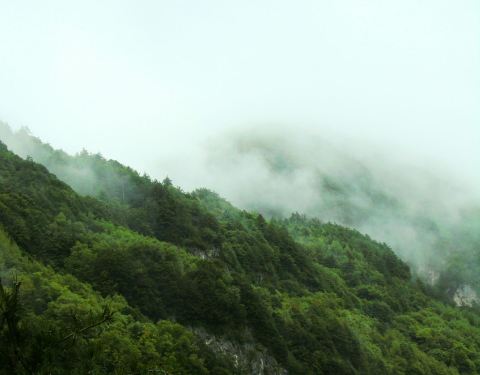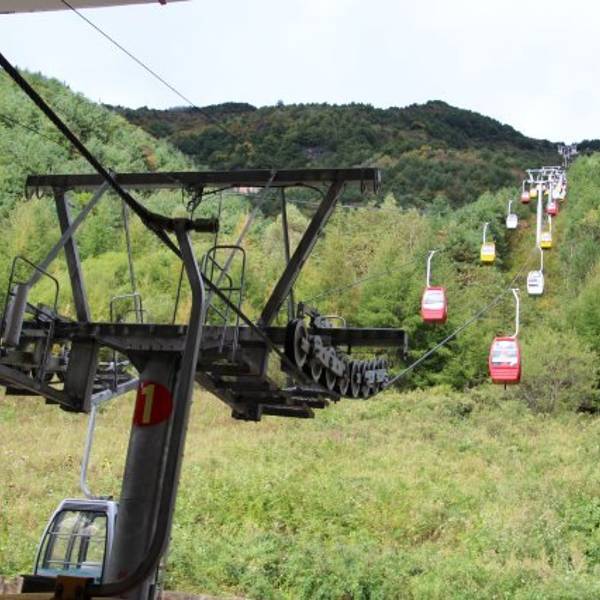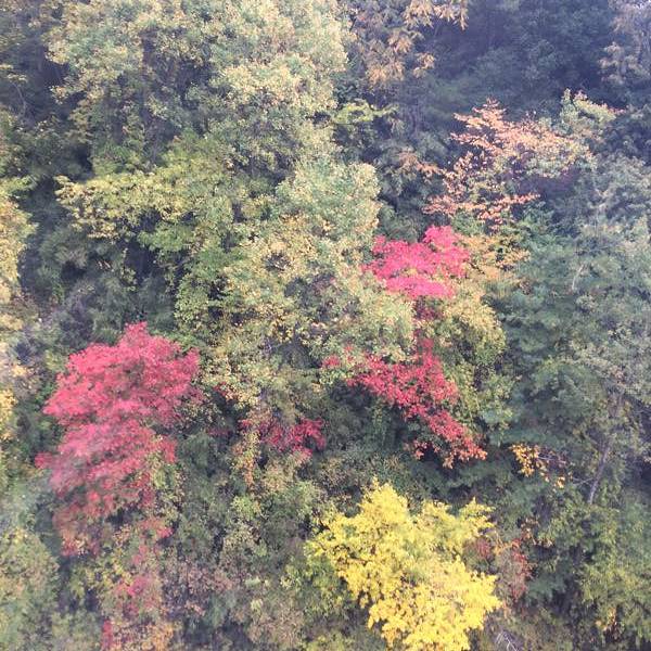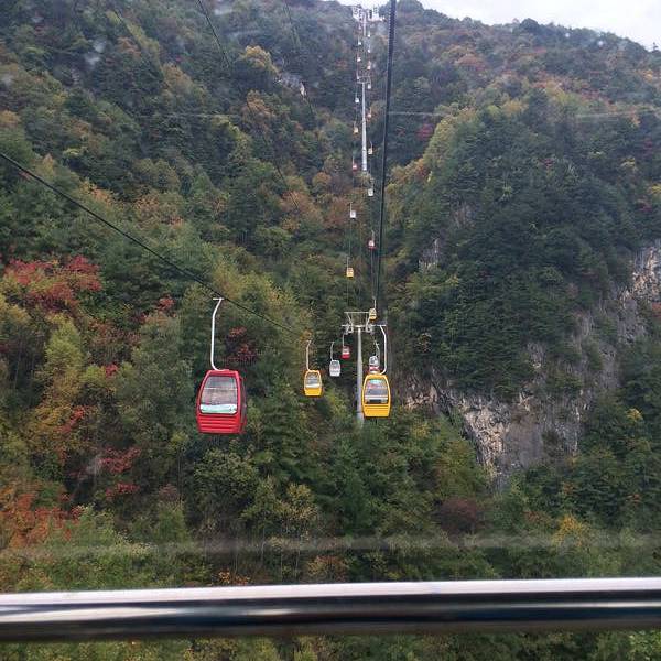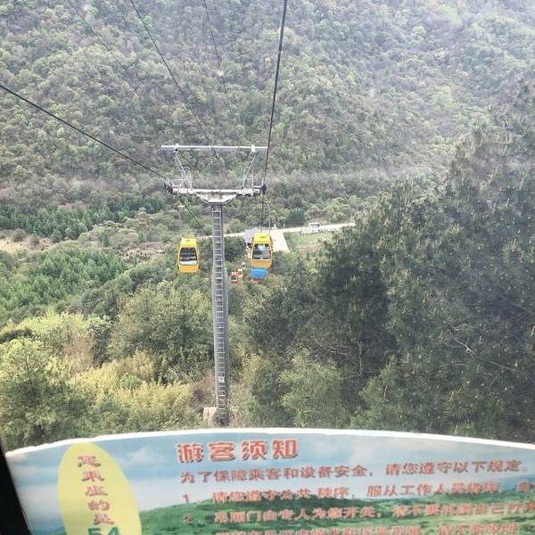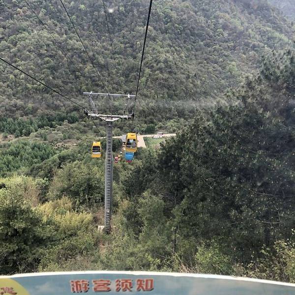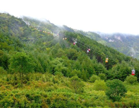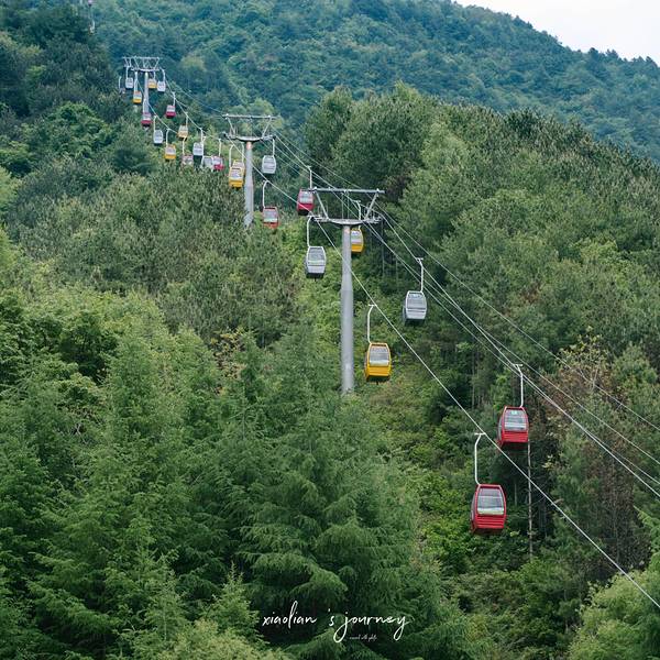 因为海拔较高,上山需乘坐20多分钟的索道,索道在山间穿梭,各类茂盛的植被从我们眼前流逝。