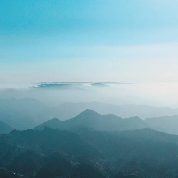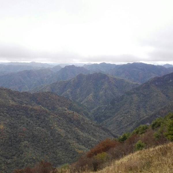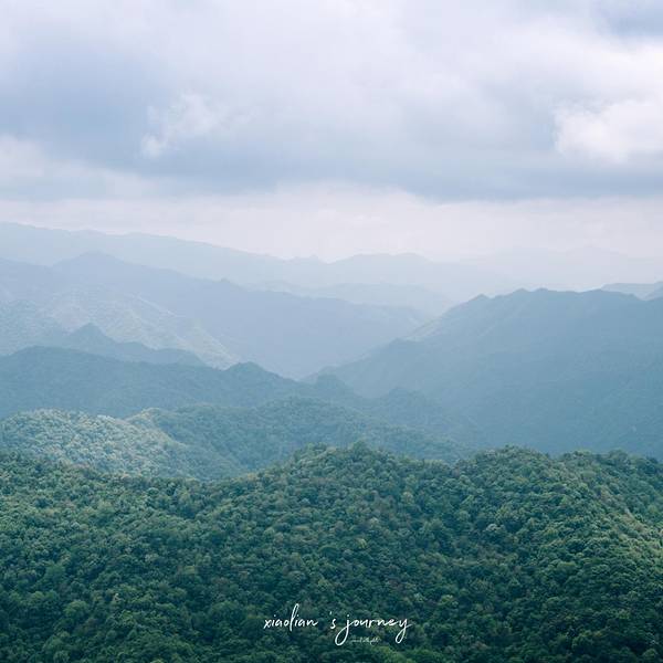 随着气喘吁吁的攀爬,眼前的景致愈加广阔,远处是绵延不断的山峰,那群山在天边晕染作一副水墨画。