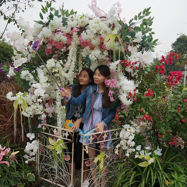 漫花庄园是位于成都市新都区三河街道内占地500亩的主题公园,是距成都市区最近的大型赏花基地。 整个景区按4A景区标准建设,以美式、欧式风格布局,以名花、名木造景,常年百万盆鲜花盛开。全区内有绿道、健身中心、婚纱摄影基地、室内智能恒温立体花卉展示中心、户外花卉展示区、精品苗木研发培育中心、游客接待服务中心,其中游客接待服务中心包含了餐饮、棋牌、会议、户外茶坊等。地址,成都市新都区蜀龙大道南段银杏园路口。交通,从成都方向:公交198路(蜀龙路银杏路口站下)、公交665路(拉菲庄园站下)。门票38元一人。金秋 十月这里滨纷多彩,鲜花满园,百合花,欧洲玫瑰,醉蝶花,向日葵,菊花,曼陀罗,薰衣草,波斯菊等,竞相开放,景色如春,形成花的海洋,处处充满了浪漫,童话,欢乐,令人陶醉。下车就看见各种鲜花摇曳着欢迎我们。浪漫的百合花盛开了。一进大门,只见花团锦簇,以百合花为主导,各种花卉造型各异,让人目不暇接,置身于花海之中。花展分几大区域,这里是能量广场,风车小屋。还有十二星座花园。红尘深深,时光飞渡,各色百合悄然竞开,花开的日子,那瓣瓣柔香里飘浮着多少浪漫的情感。女人如花,花开如梦,每一个女人都是一朵花,缤纷妖娆,浪漫多情,在人生最美好的年华,盛开如诗似画。只把自己幻化为花间一朵沉醉在瓣瓣花香里。风伴随向日葵迎着午后的阳光,思绪轻盈飞舞,滚动着岁月的光辉,沉淀在时光美好的回忆里。能量塔悄然为百合花提供爱的暖意。盛开的红玫瑰像爱情的火焰熊熊的然烧。这婀娜多姿的红草就像热情奔放的少女。那位朋友能告诉我这是什么草。小天使们,似一曲快乐的音乐,如春风化雨般,洗涤着心灵的尘埃,拂去了心底的忧伤。花架下,红玫瑰花开正艳,你悄无声息从古代走来,每一朵玫瑰花,都让你写满了馨香的絮语,遇见你只是彼此人生旅行中的相逢,然后默默地看着你的背影离开。我的世界你来过,却又风尘仆仆的走了,望见你忧郁的眼神,你我不经意的相遇,悄然刻画在心头,花开不为倾城,只为我的世界你来过。一场相识一场梦,盛开的玫瑰花见证了我们的相遇,离别,玫瑰花上的闪烁的露珠,是你悄然滴落的眼泪。伸开双手轻拥五彩缤纷飘逸的花瓣。风车下来张自拍,把花香随风带回家。与花相比谁笶的灿烂。小天使与小天真对话小姐妹像蝴蝶在花丛中嬉戏。 缘分的相遇,情缘的红尘,爱如花开,相遇在这旖旎的时光。林荫深处的小路,时常传出呢喃细语及爽朗的笑声,那是爱的小路。花团锦簇与花样年华的少女构筑花的世外桃源在花园的栅栏前遥望。清晨,推开小木屋的木窗,姑娘深吸一口芬芳的花香,灿烂的笑容迎接旭日的抚爱。茫茫人海中,婆娑红尘里,望见你那开心的一笑,仿佛时光停止,你我的邂逅,是我今生遇见动人心弦笑靥。童话般的浪漫花园相识有缘,相遇有情,牵手心型门,走向爱之路。爱之路九曲花海澄上浪漫花车,享受浪漫情感少女在花海中的靓影多么天真,可爱。少女和向阳花花海中的女人花两小无猜的两朵小向阳花。花海花园深处小木屋,让人很想静静住上一晚,在月光下,静悄悄地听花絮语小辫子真可爱熊猫也出来凑热闹。儿童乐园仙人掌独树一帜幻化成一朵花,溶合在花丛里姑娘被薰衣草深深地迷住一种美好,一片绿洲,一种浪漫,如一束明媚的温馨,留在心田。芦苇花随风摇曳被薰衣草迷惑的人们。与花海不一样的绿洲享受一下把自己框进去的感觉静寂的花海小湖。小湖旁的木屋。定格美好的画面。比翼齐飞的白天鹅小姐妹牵手的倩影,渐行渐远,草地上只留下歌声回荡草坪上的小精灵笑的多开心通往童话世界的绿色通道拥抱花儿,溶入花里,花季少女,梦幻世外桃源两旁专门介绍各种花卉的科普大道。花海,大树,亲密一家。妹妹坐船头,遥望哥哥来。玫瑰花路的少女古代蜀人艺人的石雕置身于玫瑰花海中。怒放的红玫瑰浪漫百合,爱情玫瑰,相互交融,相得益彰信步走在这五彩缤纷的花海里,眼前幻化出美丽的花仙子,倾听着花之细语,你的世界我来过,我的脚印在你的世界徜徉,人生旅程,过客匆匆,花开花落,花开不只为倾城,只为时光缘分而默默绽放,有多少擦肩而过的缘分成了瞬间的永恒,有多少并肩走过的小路成为生命里的感人肺腑的故事,我把有你陪伴的的那一段记忆写进我的故事里,你我的邂逅,是我今生最美的情感。