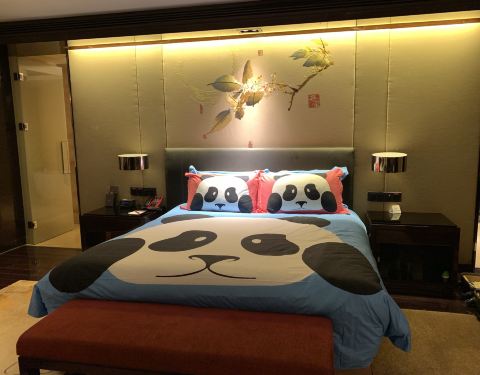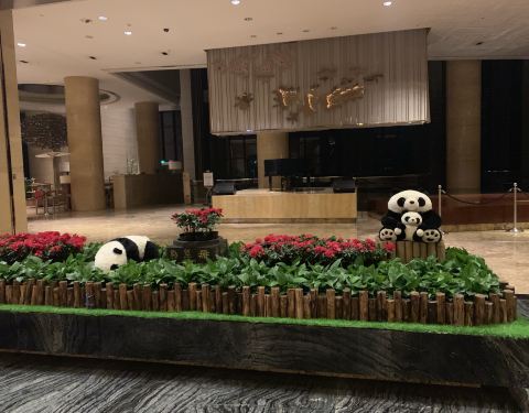 第二次来成都住在新都区保利公园皇冠假日酒店,旁边是保利地产开发的198公园和其他房地产项目,区域非常大。这里离成都大熊猫繁育研究基地非常近,酒店主打大熊猫主题,每天有专车接送客人往返熊猫基地,需要提前预约。距离机场接近40公里,晚上打车近200元,要注意坐出租到新都区加价50[%],不太合理的规定。