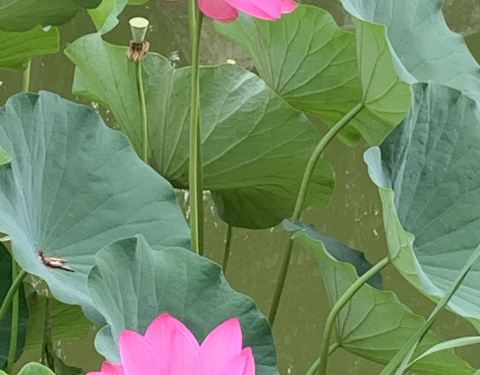 周边居民晨练好去处。有树有花有水。荷花开了引得无数游人前来观赏。