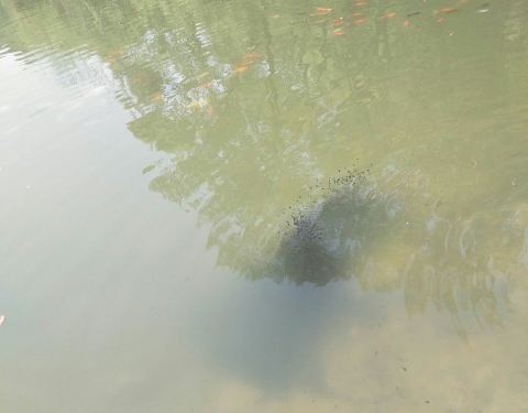 ...开了,非常漂亮,池塘里好多锦鲤和黑色蝌蚪,好多家长带着小孩,在周末来此地玩乐,放风筝,赏景……