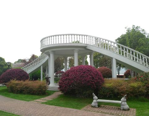 桃园在橘子洲的中部 靠近焰火广场附近 春天的桃园是最漂亮的地方 桃花和其他的花争相开放 很是舒服 可惜的是去的两天都是阴天 天空不作美 哎