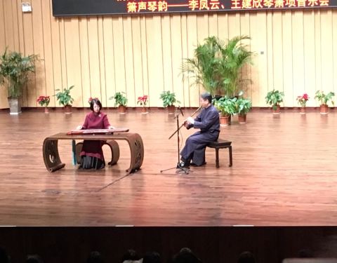 为了让孩子了解中国的传统乐器,早早预定了琴箫埙合奏的演奏会门票。结果没想到,正好碰到气温骤降,下雪,地面冰冻,不敢开车,只好做地铁,然后提心吊胆走了一公里的结冰路,终于到达音乐厅。演奏会在湘江厅,比较大,虽然没有满座,人还是不少,偷偷拍了几张照。说老实话,看得出演奏家们水平是不错,不过我们这种对传统乐器缺乏了解的人,听了半天,除了少数节奏感强烈的时候,大都昏昏欲睡,还是对此接受不了,不是对这个感兴趣或学这个的,还是别浪费时间了。